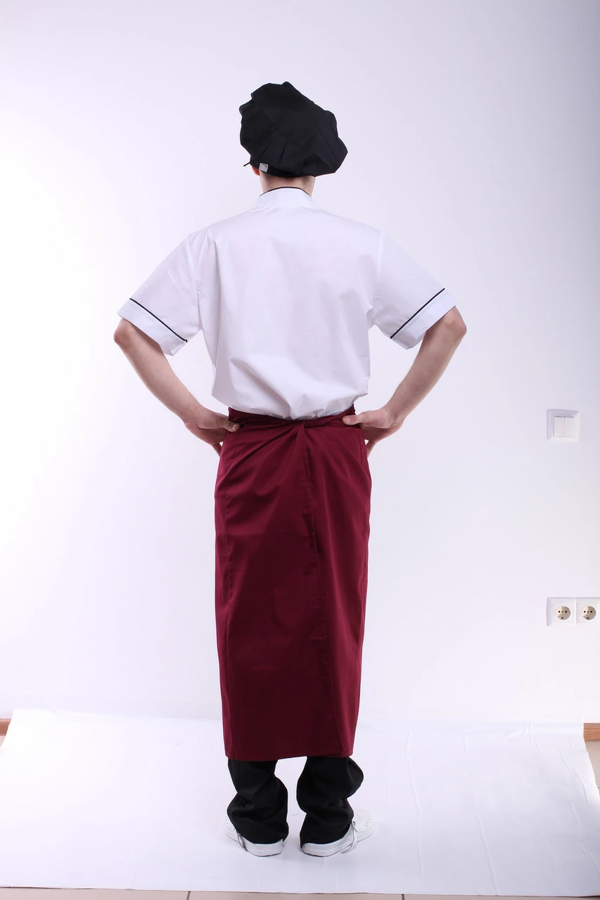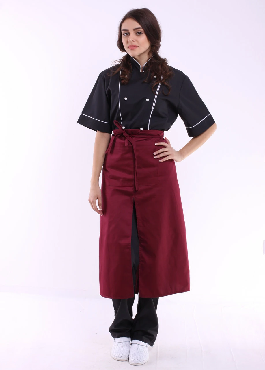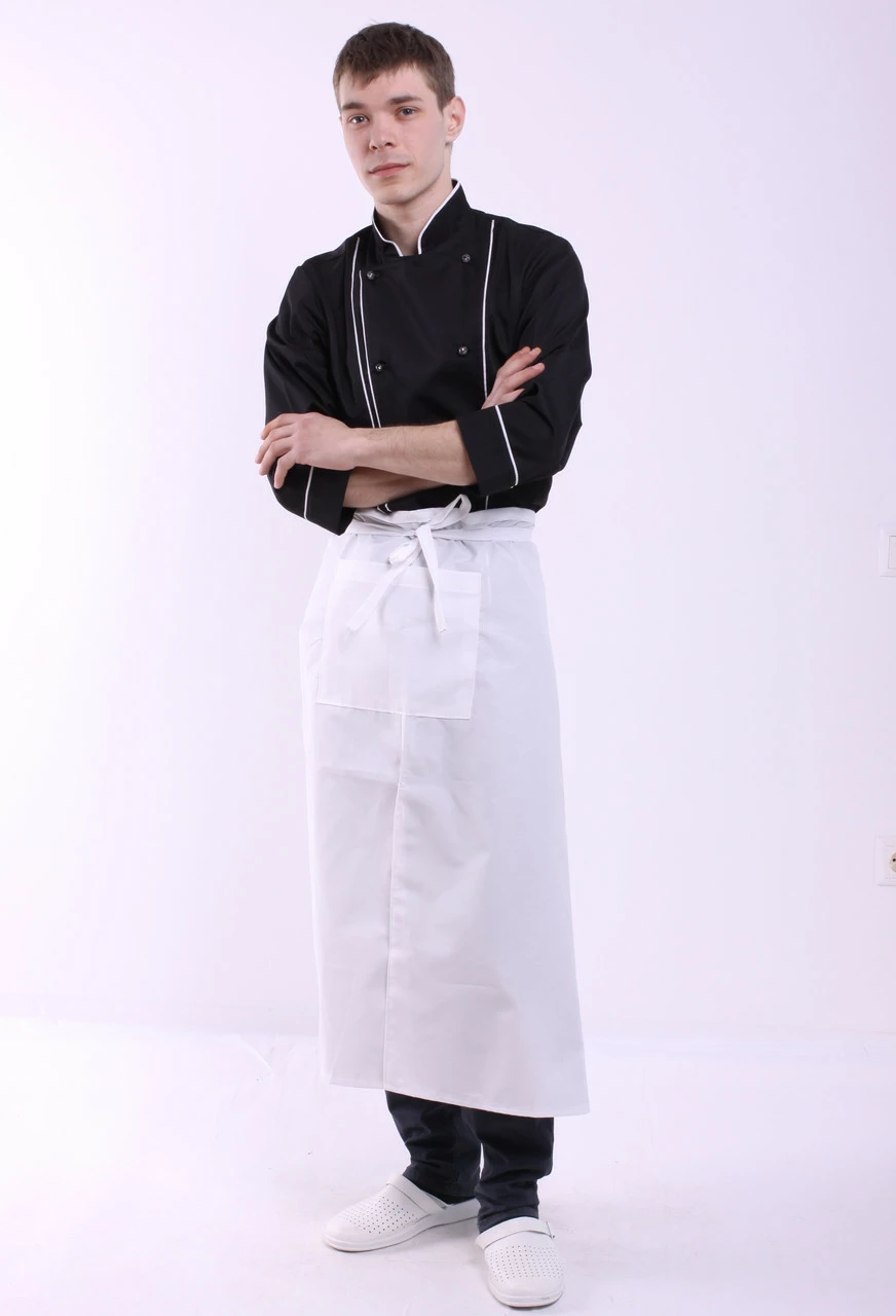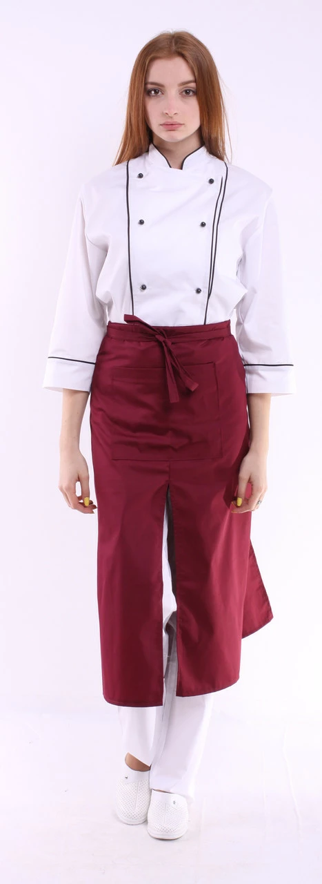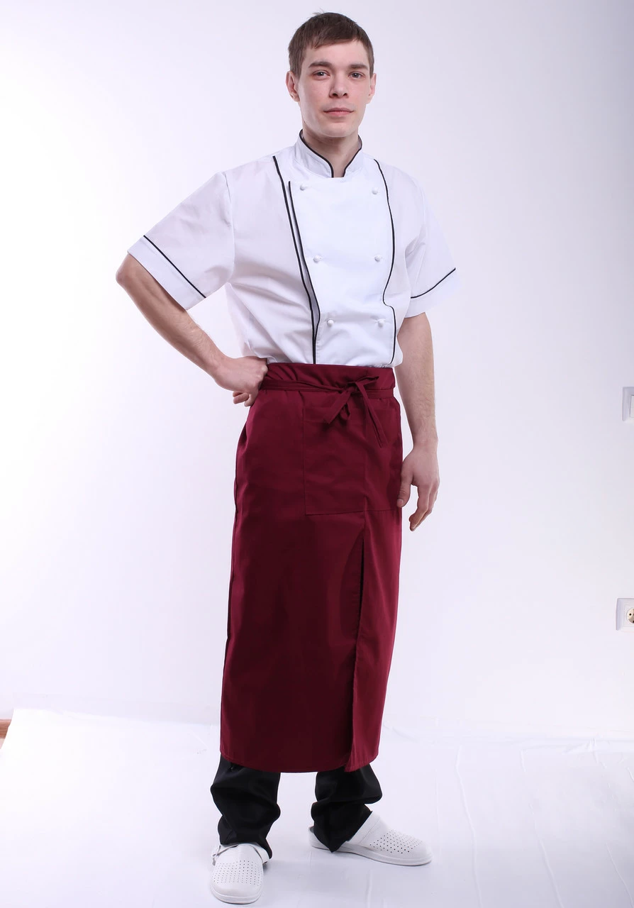 Фартухи есть разных цветов, с нагрудниками и без. Выполнены из прочной плотной ткани.