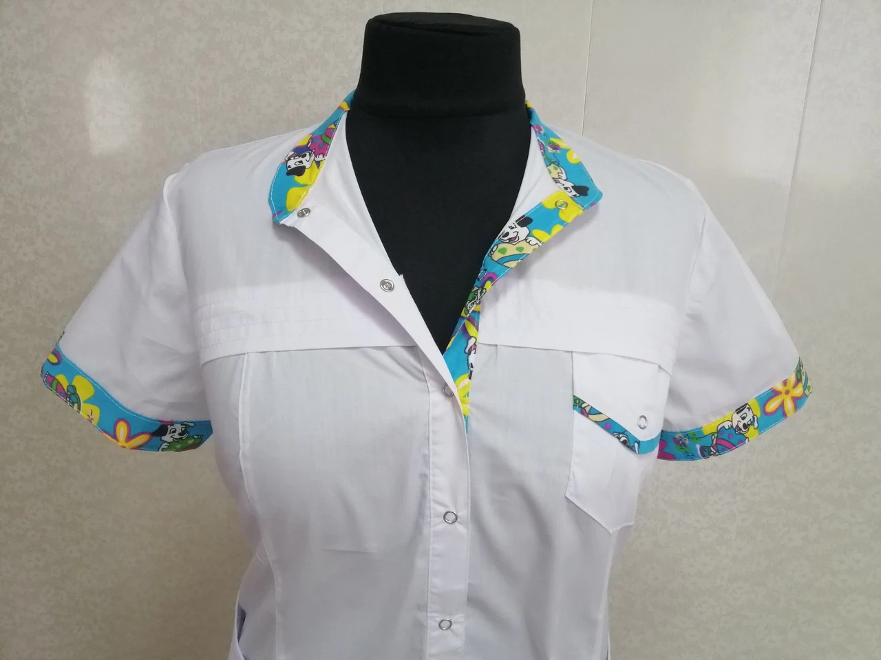 -Халат имеет накладные карманы и цветные
